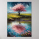 Transport yourself to a world of serene beauty with this captivating digital art poster. A solitary sakura tree stands gracefully on the verdant bank of a tranquil swamp. Its delicate blossoms whisper tales of fleeting beauty. In this masterpiece, classic oil-painting style captures the enchantment of nature's tranquillity.