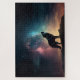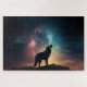 Lone Wolf Howling at Colourful Nebula Jigsaw Puzzl Puzzle