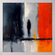 This powerful abstract artwork captures the essence of isolation within a stark, urban atmosphere. A solitary human silhouette stands suspended between contrasting blocks of colour—deep charcoal black, muted grey, and a striking vertical field of fiery red. The rough textures, visible brushstrokes, and dripping paint evoke weathered walls, empty streets, and the quiet weight of solitude in a modern cityscape.