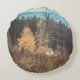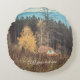 Landscape photography. Late fall, lonely cottage in the woods, mountains in the background, wildflowers in the foreground. Moody scene for all wildlife admirers, travelers, dreamers, adventure seekers and country style lovers. Please, personalise this Round Pillow adding your own message. For further modifications (font style, font colour, text position) click "Edit design”.