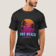 An artistic representation of Long Beach, California featuring iconic landmarks like the Queen Mary and palm trees against a colourful sunset backdrop.