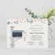 A baby shower by mail invitation is perfect for those that live a long distance from loved ones, but still want to shower the parents to be with love and gifts to prepare for the arrival of their baby. This long distance shower by mail invitation features a hand painted mailbox filled with white and blush flowers and the request poem "It’s difficult to live so far away When Baby Anderson is on the way. Gathering loved ones can be so hard So if you like, please mail your gift or card. And as they arrive day by day, They’ll feel all your love from far away." Customise with your wording. Click "Customise further" to edit the font style, size and colour if desired.