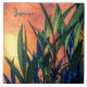 This 6” Ceramic Tile features original artwork by ZoeSPEAK, a photograph of long green leaves throwing deep blue shadows on a rustic orange wall, highlighted by some yellow sunshine. The image has a warm, southwest mood, and the leaves belong to Mexican petunias. There is optional name text which is set for you to personalise, or delete if you prefer.