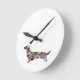 Long Haired Dachshund Geo Silhouette Plaid Round Clock