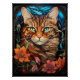 Long-haired Tabby Cat Stained Glass Window Design Poster