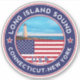 Long Island Sound sticker with flag of United States, rounded shape with photo