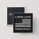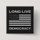 Long Live American Democracy design with a black and white United States of America flag. If you support freedom for all then this patriotic design is for you. Express your love for America and your desire to keep America democratic with no authoritarian rule. It's offered here on a custom square pin back button. Choose any background colour and more shapes and sizes are available. Wear this button anytime and at the next anti Donald Trump protest!