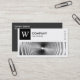 A business card template with a long rectangular image/photo area with a close-up photo of typewriter type leavers which alternatively can be replaced with your own image or photo and with a panel in the top left for a monogram or logo which includes a "W" as an example monogram which can also be changed. The design is balanced with four small rectangular text based symbols on the right created with the Semaphore symbol font. The white area is also a frame mask making it easy to position and resize a photo underneath. Company name and business type/quote on the front with name and contact details on the back in white on a contrasting dark grey background. Can be adapted to a variety of businesses and other uses.