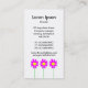 An attractive business card with a simple hand drawn flower motif. Company name and business type on the front with name and other contact details on the back with a three flower motif.