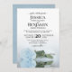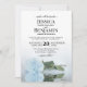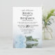 This wedding invitation is elegant, lush, and romantic. It features a gorgeous photo of a single long-stemmed light dusty blue or powder blue coloured rose lying on its side reflecting in water with waves and ripples. The back is a marbled light blue-grey colour. Beautiful way to invite your friends and family to share in your special day.