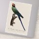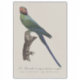 This elegant illustration captures the beauty of the Long-Tailed Parakeet (Psittacula longicauda), a striking bird known for its vivid green plumage, elongated tail feathers, and distinctive facial markings. Native to Southeast Asia, this species inhabits coastal forests, mangroves, and lowland woodlands, where it thrives in small flocks. The bird’s long, tapering tail—one of its most defining features—enhances both its aerodynamic agility and visual appeal. Males often display more pronounced coloration, including reddish tones around the face and a darker neck band, which adds to their ornamental charm. The artwork is inspired by the refined natural history illustrations of Jacques Barraband, whose contributions to ornithological art remain highly regarded. The inscription “La Perruche à nuque et joues rouges” reflects the French naming of this species, emphasizing its red nape and cheek coloration. Barraband’s meticulous attention to feather detail, texture, and posture is evident in this composition, where the parakeet is perched gracefully on a branch. The subtle shading and lifelike proportions exemplify the scientific precision and artistic sophistication characteristic of early naturalist studies. As a subject of both scientific interest and aesthetic admiration, the Long-Tailed Parakeet continues to captivate bird enthusiasts and researchers alike. Its diet primarily consists of fruits, seeds, and blossoms, and it plays a role in seed dispersal within its ecosystem. However, habitat loss and trapping have impacted wild populations, making awareness and conservation efforts increasingly important. This illustration not only celebrates the species’ beauty but also serves as a historical record of biodiversity, bridging art and science in a timeless depiction.