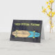 This card features a distressed style longboard style skateboard in light blue, tan and yellow with a distressed style against a dark gray and blue ink stain style background. Your custom message appears in a coordinating yellow. The inside message is also ready to be personalized. Its the perfect card for longboard riders and and skateboarders of all sorts.