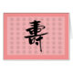 Longevity (Shou). In Chinese custom, such card should be given to the elderly on their 60th birthday onwards. Of course, one can choose to send such good greeting to their parents too, even if they are below 60 years of age.
