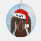 Longhaired Chocolate Dachshund Santa Custom Name Ceramic Ornament