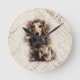 Longhaired Dachshund dog Round Clock