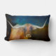 Longhorn Cow art on blue and brown Lumbar Cushion