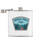 The flask itself is fine. It’s a cheap flask, obviously bought in bulk, however am prepared to overlook that. Given that it is a personalized item, I would have liked to have seen gift boxing instead of the generic packaging. Terrible printing, and/or quality. It’s a cheap, tacky vinyl. It is not cut straight and is also applied in a way that it is overhanging the bottom, causing the glue to catch on items and it will eventually roll and tear, damaging the wrap.