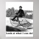 A man riding an 1800s bicycle with the caption "Look at what I can do!" added.