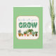 Look at you grow! This card works for many occasions including birthdays, a new job, a new home, graduation, or any other accomplishment worth celebrating! The card has a green background and reads "Look at you grow" with potted plants along the bottom.