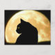 Looking Back Black Cat and Full Moon Postcard