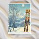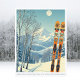 Hello from the snowy mountains of Loon Mountain, New Hampshire! We hope you're having a wonderful ski vacation. This postcard features a gorgeous blue-grey mountain landscape with retro ski boards in an orange tribal pattern.
