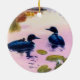 From an original acrylic painting by Brenda Thour of a family of loons, with the baby on the parents back during a beautiful pink sunset. Copyright by Brenda Thour 2003.