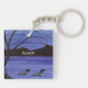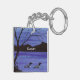 A watercolor painting of two loons on an evening lake adorns this customisable keychain!