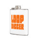 The flask itself is fine. It’s a cheap flask, obviously bought in bulk, however am prepared to overlook that. Given that it is a personalized item, I would have liked to have seen gift boxing instead of the generic packaging. Terrible printing, and/or quality. It’s a cheap, tacky vinyl. It is not cut straight and is also applied in a way that it is overhanging the bottom, causing the glue to catch on items and it will eventually roll and tear, damaging the wrap.