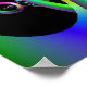 Fractal art created by Brenda Thour of a looping design in brilliant colours of blues, purples, pinks, reds, green and oranges on a black background. Copyright by Brenda Thour.