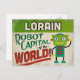 A funny Lorain Ohio vintage travel design featuring a friendly robot with fun retro style text that says, "Lorain, Robot Capital of the world!"