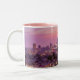 Scenic landscape LA mug. Features a stunning sunset with purple and pink tones and retro typography for the city name.