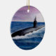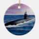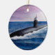 An ornament that contains the watercolor portrait of the Los Angeles Class Submarine by Sarah Jayne of Creations by Sarah Jayne. Each side displays a different version of the submarine.