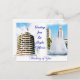 Water colour art painting of Downtown Los Angeles Grand Park Water Fountain and City Hall and Capitol Records Postcard, You can customise this postcard as "Hello: Thinking of You, Missing You Etc, art by Elenne Boothe