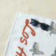 [Background Image: A beach towel featuring a vibrant watercolor illustration of seals against a backdrop of Los Angeles landmarks]