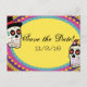 Mexican sugar skull wedding couple - this Save the Date card matches all of the Los Novios invitations and prints. There are loads of other products for your Dia de los Muertos wedding or party theme in this design suite! Great Valentine's Day or Anniversary gifts!