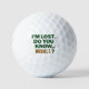 This clean golf-inspired humor design features a playful “I’m lost, do you know…” quote styled in bold green and warm brown tones. The centered layout, minimalist typography, and small golf club icon create a balanced and eye-catching look that instantly connects with golf lovers. Designed for fans of lighthearted sports humor, this witty concept stands out with its simple composition and clever message, making it perfect for showcasing personality on the course.