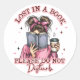 Charming illustration featuring a woman with her hair in a bun, her face is covered by the book she is reading. She is holding the book and a cup of coffee. The colourful text reads: "Lost in a book please do not disturb". This design is available on a wide variety of products.