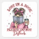 Charming illustration featuring a woman with her hair in a bun, her face is covered by the book she is reading. She is holding the book and a cup of coffee. The colourful text reads: "Lost in a book please do not disturb". This design is available on a wide variety of products.