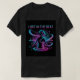 A neon-lit digital art poster with a black background featuring a figure in a white t-shirt centred in the composition. The figure has their arms outstretched, with flowing hair and glowing pink headphones. The text "LOST IN THE BEAT" appears at the top in pink and blue neon letters. The background contains a city skyline silhouette with vertical bars in cyan and pink.