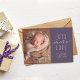 Send a sweet Valentine's Day birth announcement with this one-photo card. With a simple "lots more love" type treatment and plenty of room for custom text, this is the perfect way to introduce your newest little love to the world. The back is a matching speckled purple with room for an additional photo and more text. The colour can be changed by clicking "customise further."