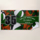This boldly designed beach towel for basketball players features varied size basketballs with green & black team colours turned every which way on a green background and prominent jersey number overlying a full length coordinating colour strip, upon which you can also personalise the athlete's name, team name & mascot name - by katz_d_zynes