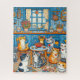 This warm and cosy Iimage in a blue and white kitchen in a blue and white kitchen Will keep you busy for hours. Done in a folk art style, there are many charming details and many charming cats!