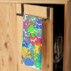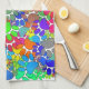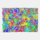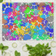 Colourful pattern of dog paw prints in many sizes, angles and colours.