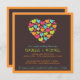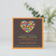 A heart of hearts design in bright shades of turquoise, lime, orange, and hot pink - makes a fun and cheerful couples wedding shower invitation. PLEASE NOTE: ADDITIONAL POSTAGE IS REQUIRED TO MAIL SQUARE INVITATIONS; CHECK WITH YOUR POST OFFICE TO ENSURE YOU ARE PURCHASING THE CORRECT DENOMINATION