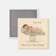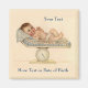 Adorable baby with big smiles is laying on blanket covered weigh scales. Soft blue and peach colours. Customise to announce birth or hand out as keepsake birth announcements. More customisable gifts with this design in my gallery.