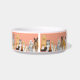 lots of cute dogs, cats, rabbits, birds and other small furry friends lined up waiting for their dinner. repeating pattern.