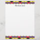 This bright customisable letterhead is covered in lots of spots of purple, pink yellow and black arranged in rows separated by areas of dark green. This fantastic abstract brings to mind a wall covered in splodges of paint after a paintball game. The text at the top of the letterhead is customisable so you can add your name or company name. You can also click on the "customise it" button and add additional text, such as address and contact details, anywhere on the letterhead in a range of font styles and colours.