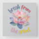 A clock featuring a watercolor lotus flower, with the phrase "Break from the Grind" centred around the image. The lotus flower, known for its beauty and resilience, symbolises purity, enlightenment, and spiritual awakening, suggesting a peaceful escape from the daily stresses.