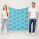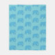 Fleece blanket in a pattern of a richly embellished elephant, in a turquoise, dark indigo blue and white lotus flower pattern against an aqua background