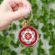 Lotus Flower Mandala, Dark Red, Grey and White Key Ring